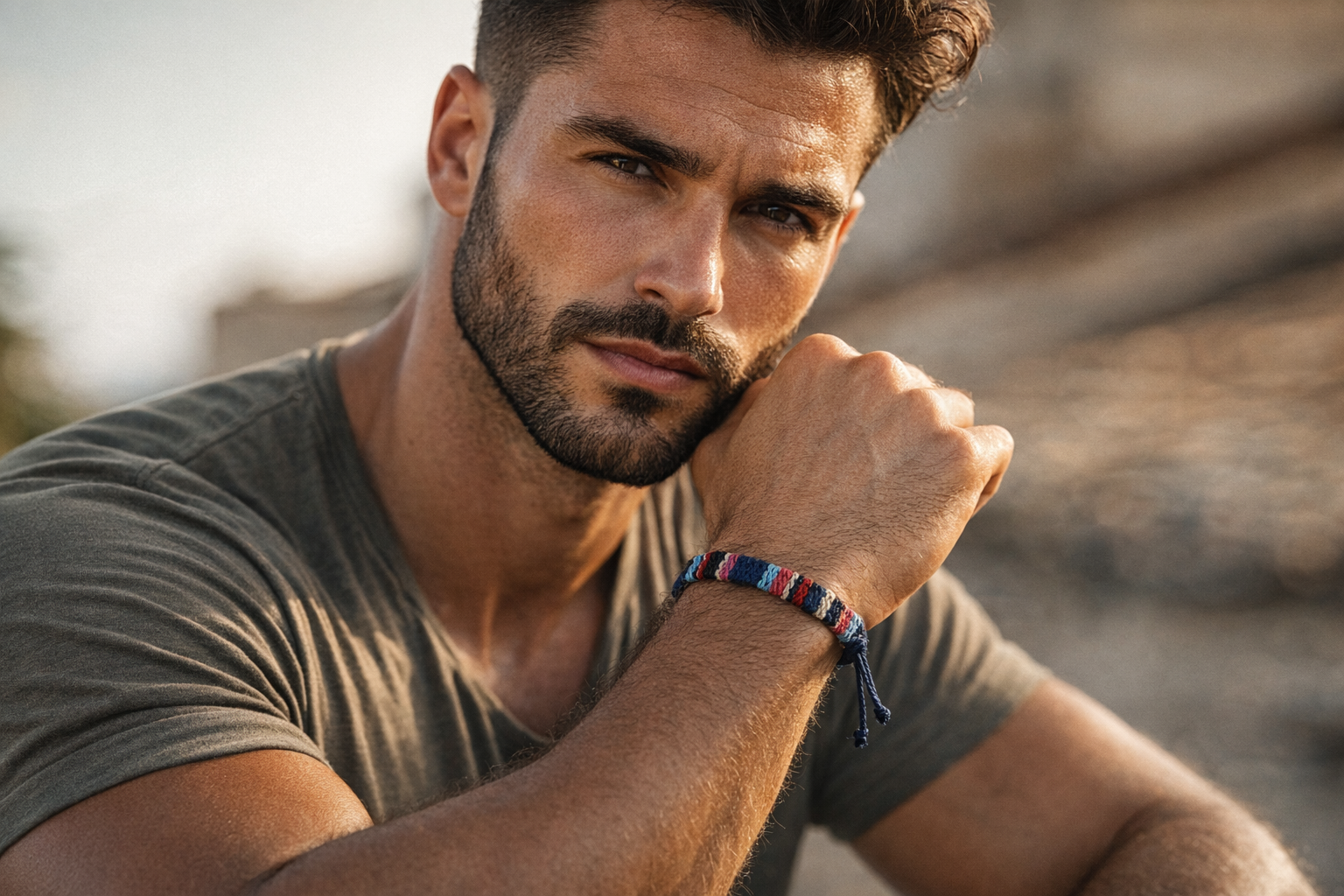 Bracelet tissé multicolore aux finitions soignées, alliant élégance naturelle et esprit bohème.